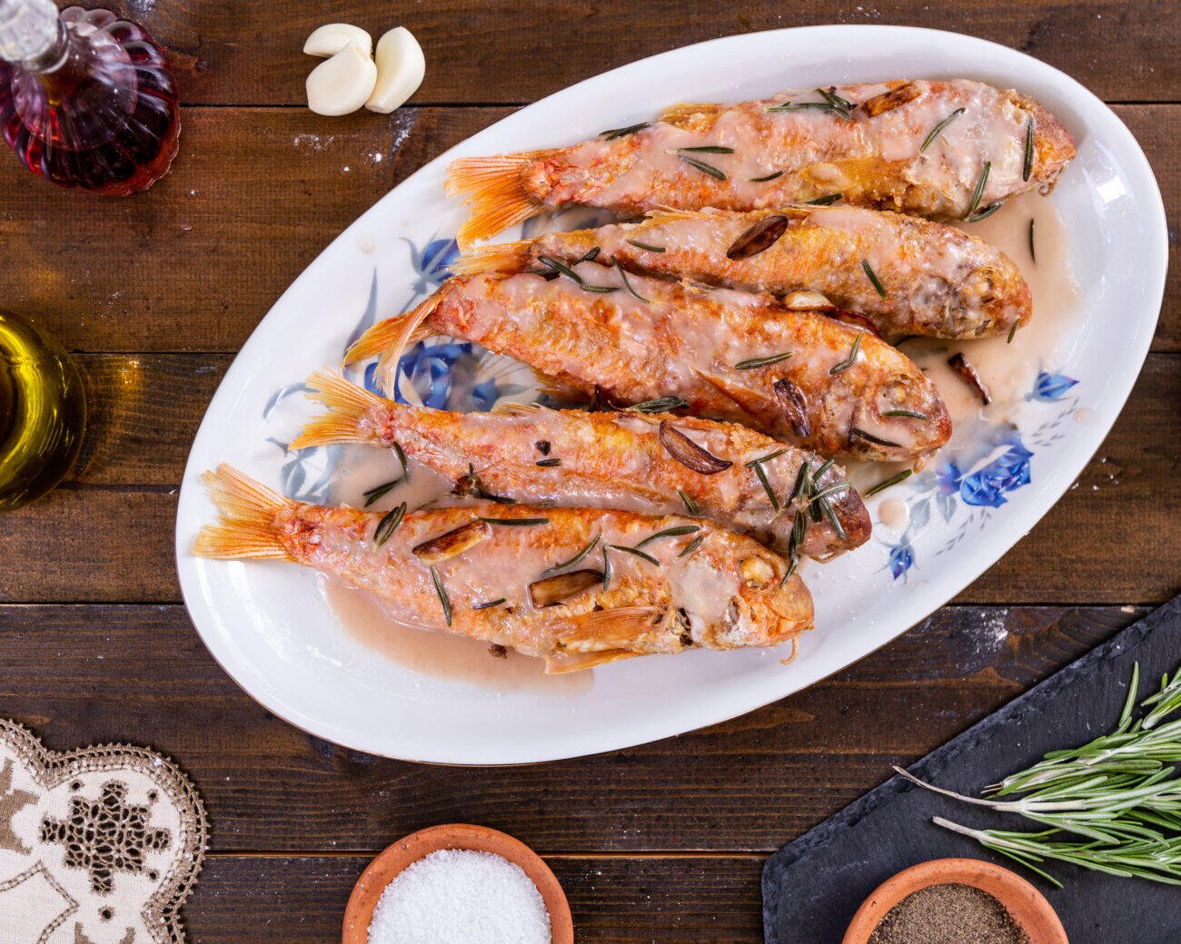 Προμηθευόμαστε τα ψάρια από την ψαραγορά μας BlueIsland. Πλένουμε και στραγγίζουμε τα ψάρια μας. Αλευρώ...