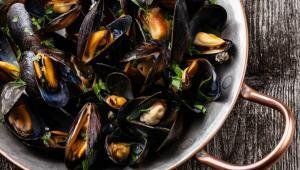 Μύδια ατμού με άσπρο κρασί