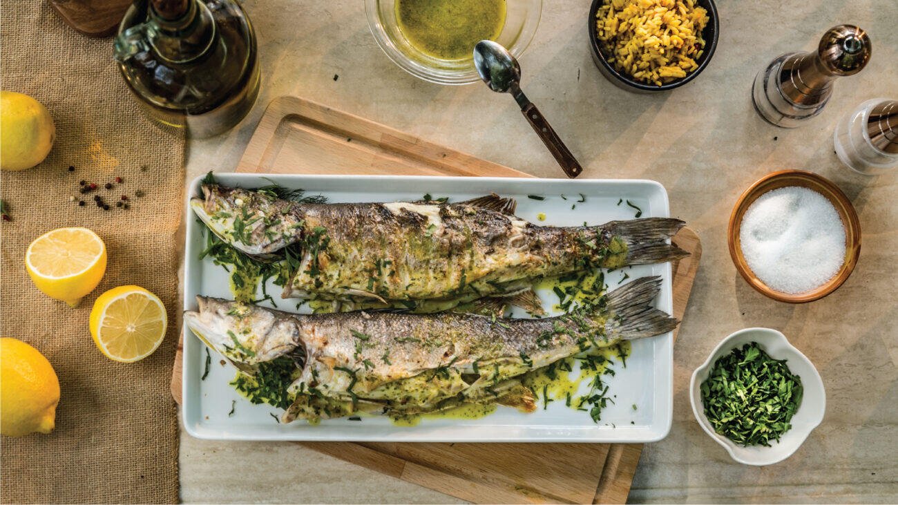 Λαβράκια ψητά στα κάρβουνα