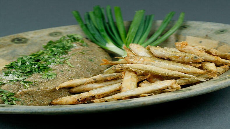 Μαρίδες με πουρέ από φακές