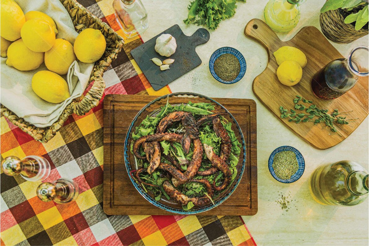Προμηθευόμαστε το χταπόδι μας καθαρισμένο από την ψαραγορά μας Blue Island. Πλένουμε και στραγγίζουμε ...