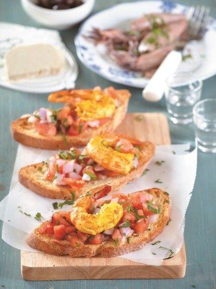 Μπρουσκέτες με γαρίδες