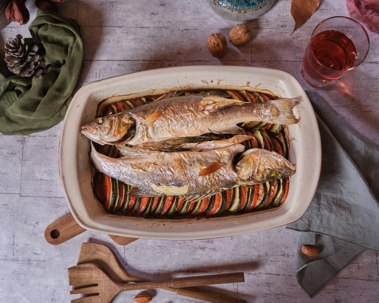 Λαβράκι στο φούρνο με Τιάν Λαχανικών