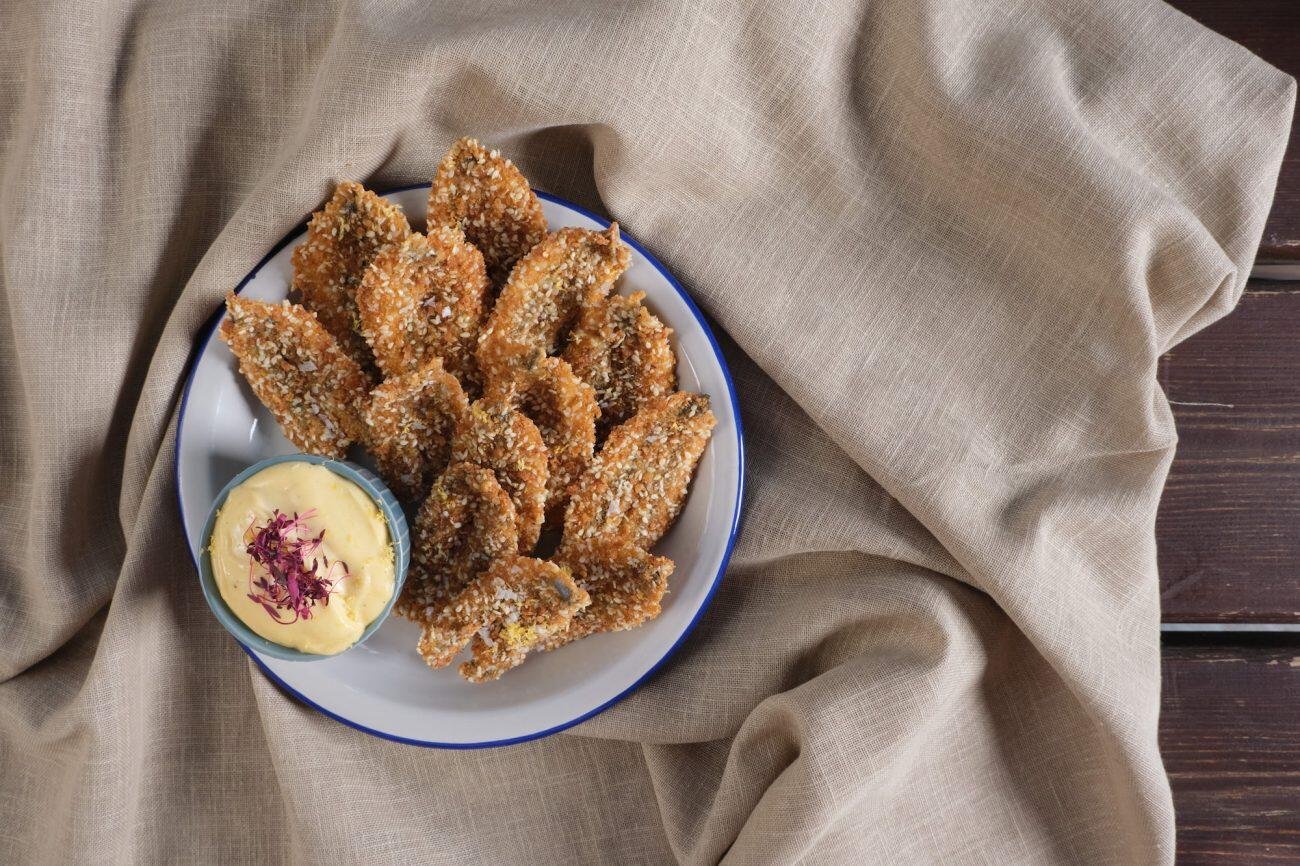 Γαύρος στο τηγάνι με τραγανή κρούστα σερβιρισμένος με σπιτική Μαγιονέζα
