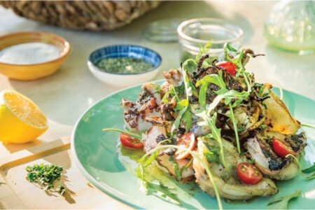 Χταπόδι στα κάρβουνα με αρωματικό λαδόξιδο