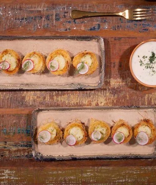 Χτένια τυλιγμένα με κανταΐφι μαριναρισμένα με λικέρ πορτοκάλι