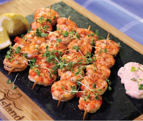 Γαρίδες κεμπάπ με σάλτσα γιαουρτιού