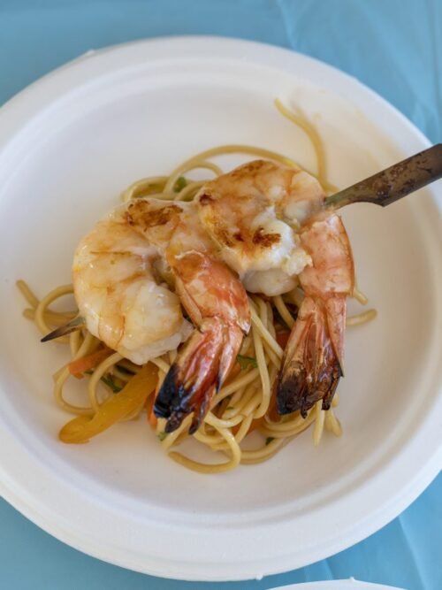 Γαρίδες στην Σχάρα με Σαλάτα από Νούντλς και Λαχανικά