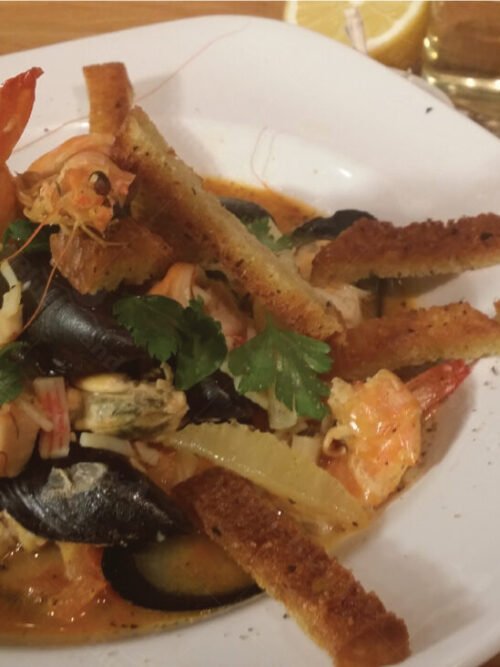 Προμηθευόμαστε τα θαλασσινά μας από τις Ψαραγορές Blue Island. Σε μια βαθιά κατσαρόλα ρίχνουμε το ελαι
