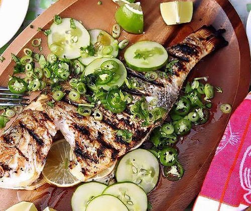 Προμηθευόμαστε το ψάρι μας καθαρισμένο από τη ψαραγορά μας Blue Island. Πασπαλίζουμε το ψάρι με αλάτι κ