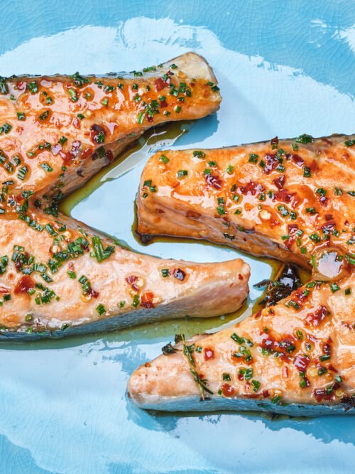 Σολομός steak με Σιρόπι Σφένδαμου και Τσίλι