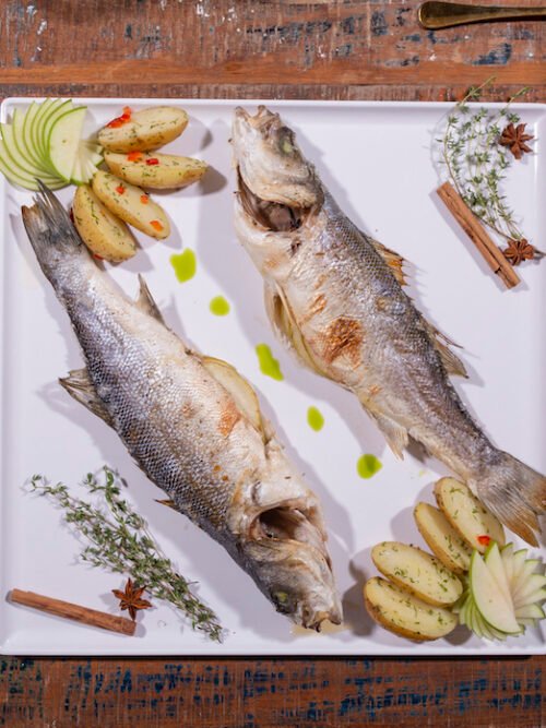 Λαβράκι Γεμιστό με Πράσινο Μήλο, Αχλάδι, Κανέλα και Αστεροειδή Γλυκάνισο