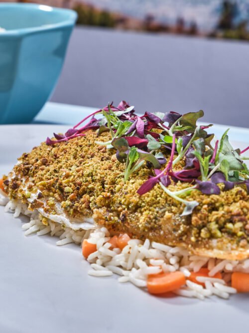 Λαβράκι φιλέτο με κρούστα από Φιστίκι Αιγίνης