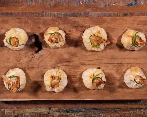 Προμηθευόμαστε τα φιλέτα Λαβράκι και τις Γαρίδες από τις Ψαραγορές Blue Island. Βάζουμε το λαβράκι μέσα