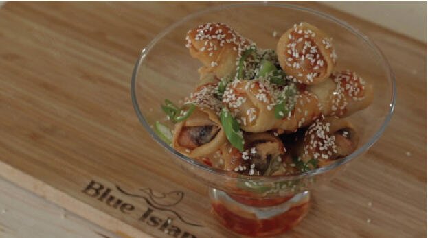 Spring Rolls με Μπαρμπούνι και Sweet Chili Sauce
