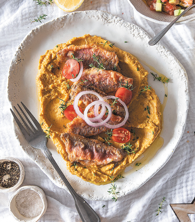 Red Mullet fillets with Fava and a Fresh Salad