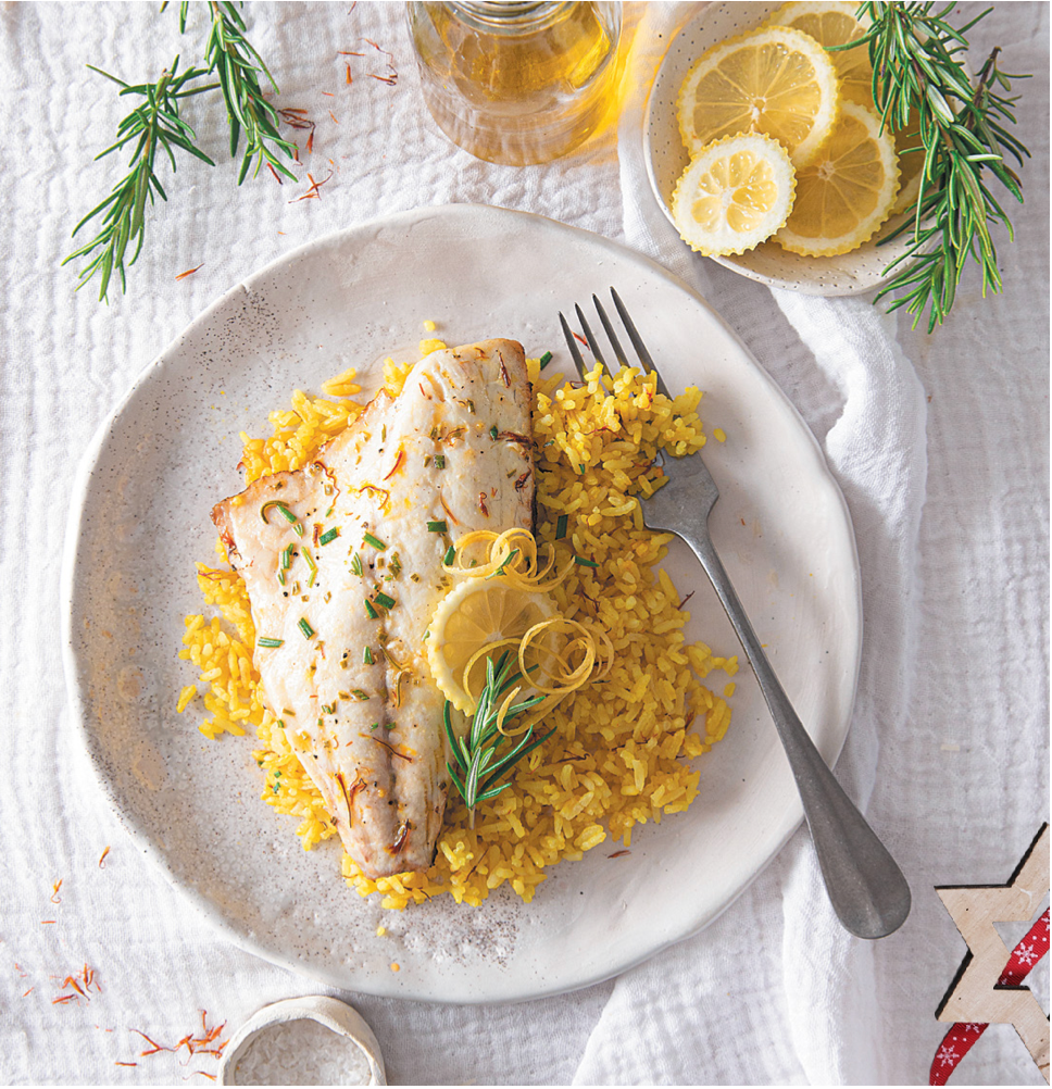 Sea Bream fillets with saffron served with rice