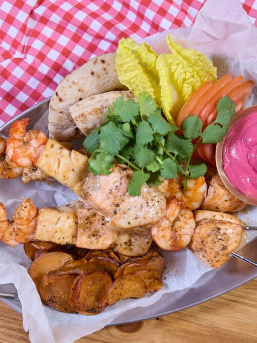 Crispy Red Porgy Burger with Oven-Baked Potatoes and Asian Salad