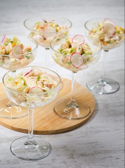 Sea Bass Ceviche salad with green apple and dry apricots