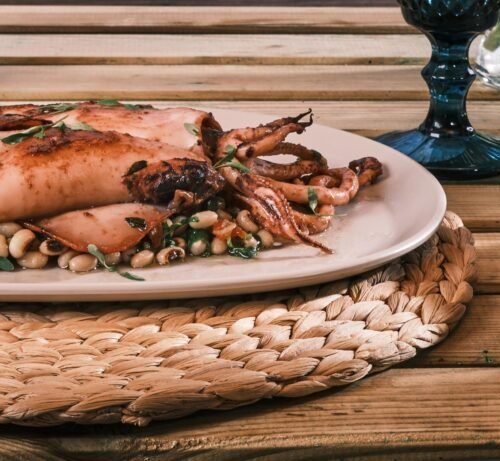 Fried Calamari (Squid) with Black-Eyed Beans