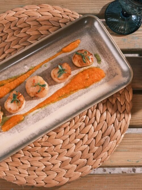 Fried scallops with a creamy carrot and ginger purée