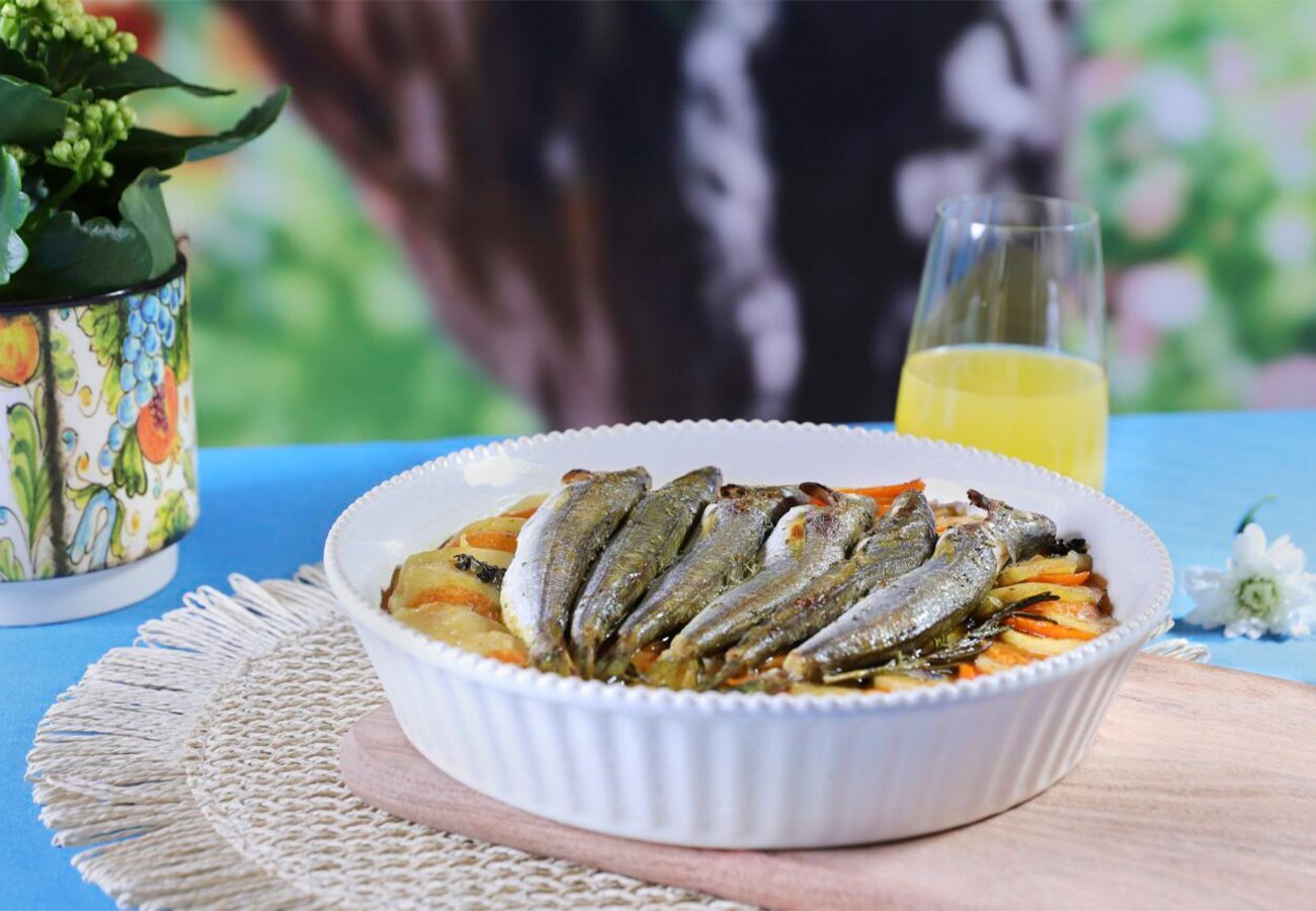 After 30 minutes, remove the vegetables from the oven and take off the foil and paper. Place the bogue fillets on top of the vegetables and return the dish to the oven. Bake for an additional 20 minutes.